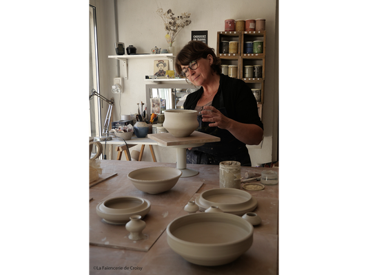 Un coup de cœur en visitant un atelier de tournage pendant l'enfance éveillera mon désir d'apprivoiser cette matière. Quoi de plus magique que de partir d'une boule d'argile et d'arriver, au terme de plus de dix étapes, à une pièce achevée qui peut avoir plusieurs destinations : fonctionnelle, décorative...et traverser le temps.